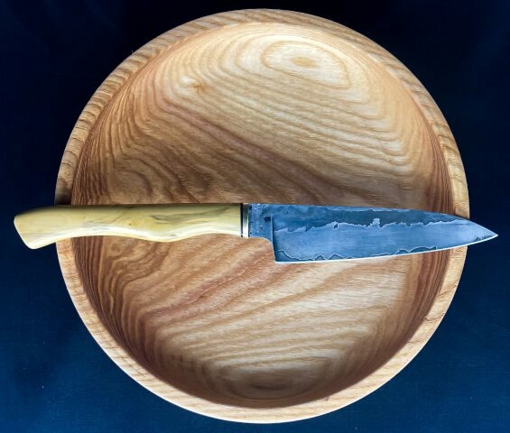 Pour les amateurs d’acier au carbone je vous présente cette pièce forgée composée de 5 couches d’aciers ( Go Maï ) , dont le cœur en C130 assure le tranchant.