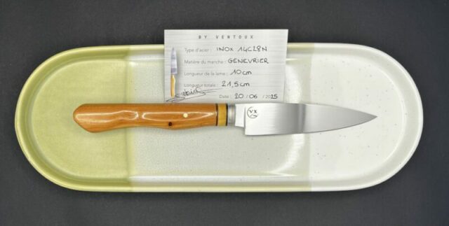 Couteaux d’office en acier 14C28N, doté d’une lame de 10cm fait pour les geste précis.